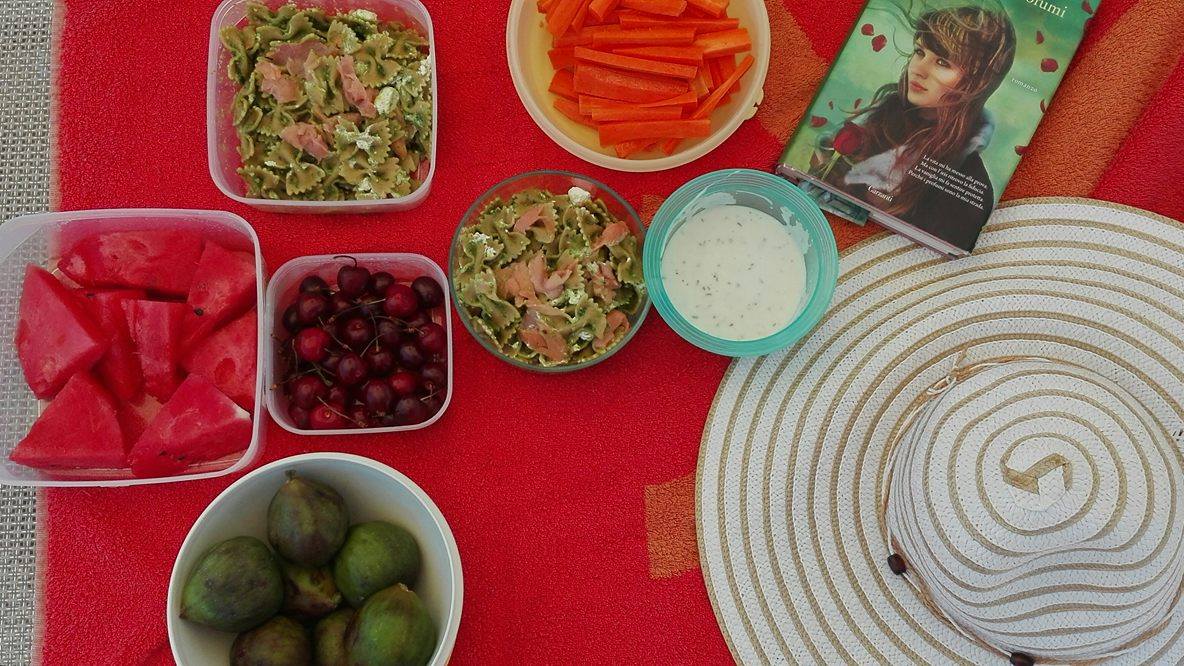 Io? Io sto in mezzo: frutta e insalate di pasta o di cereali. E qui vi do qualche idea per insalate che ho preparato per me e i miei amici per le giornate di mare.